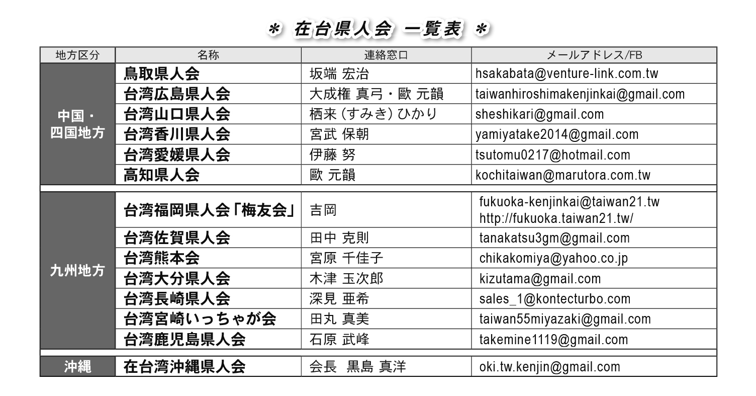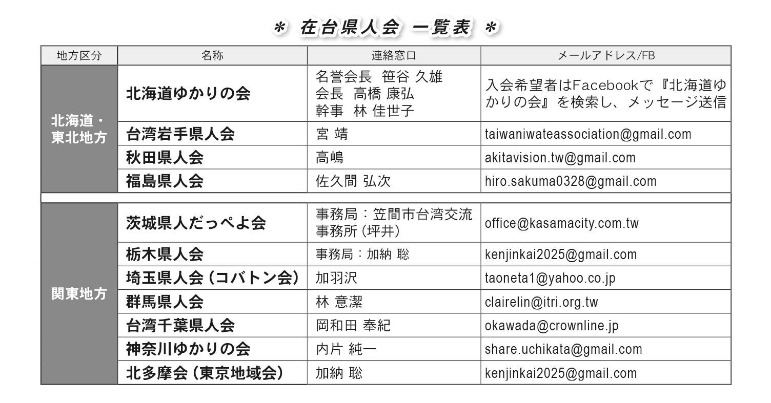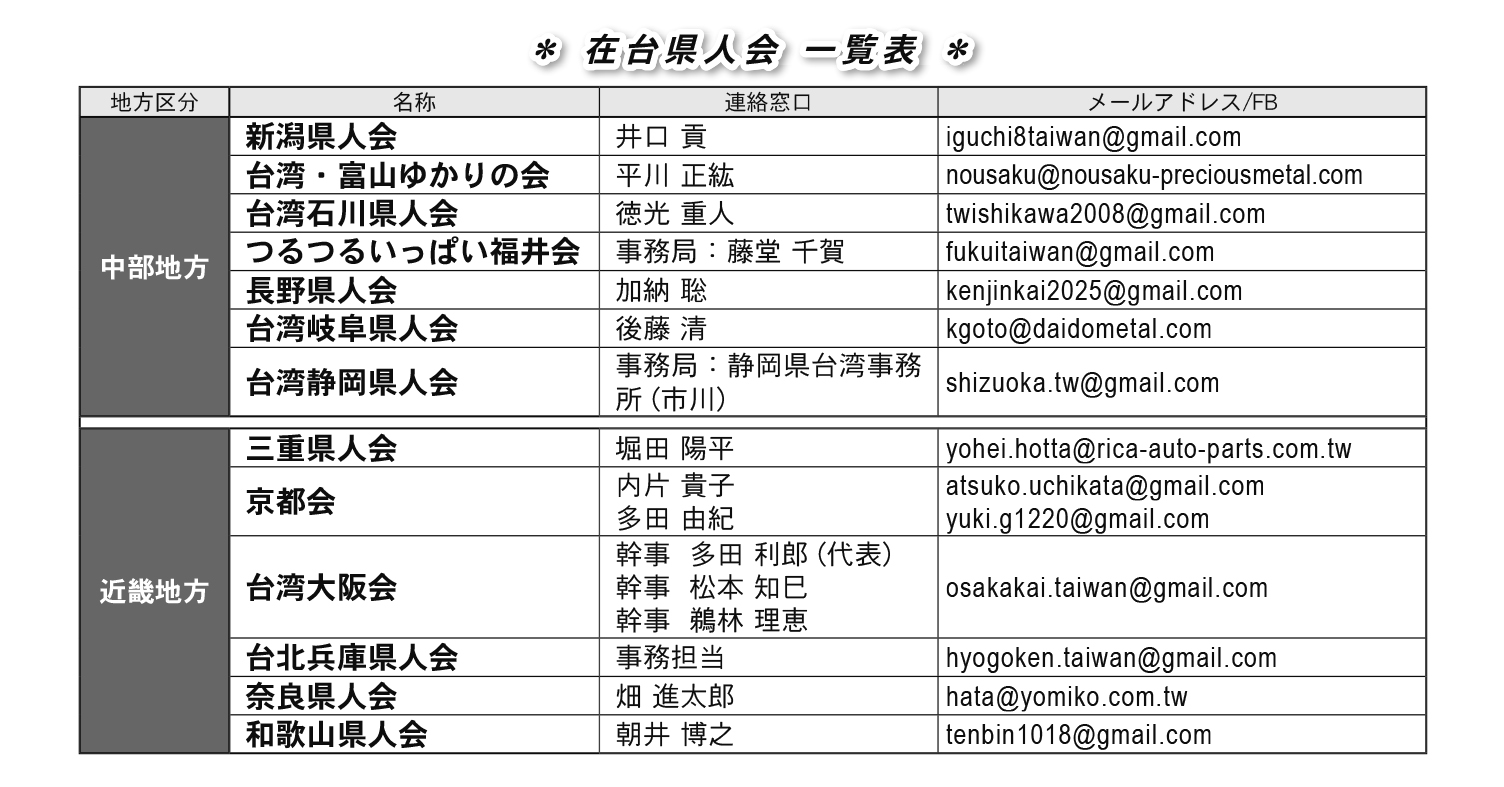 2026年3月18日更新-在台県人会/大学OB会一覧