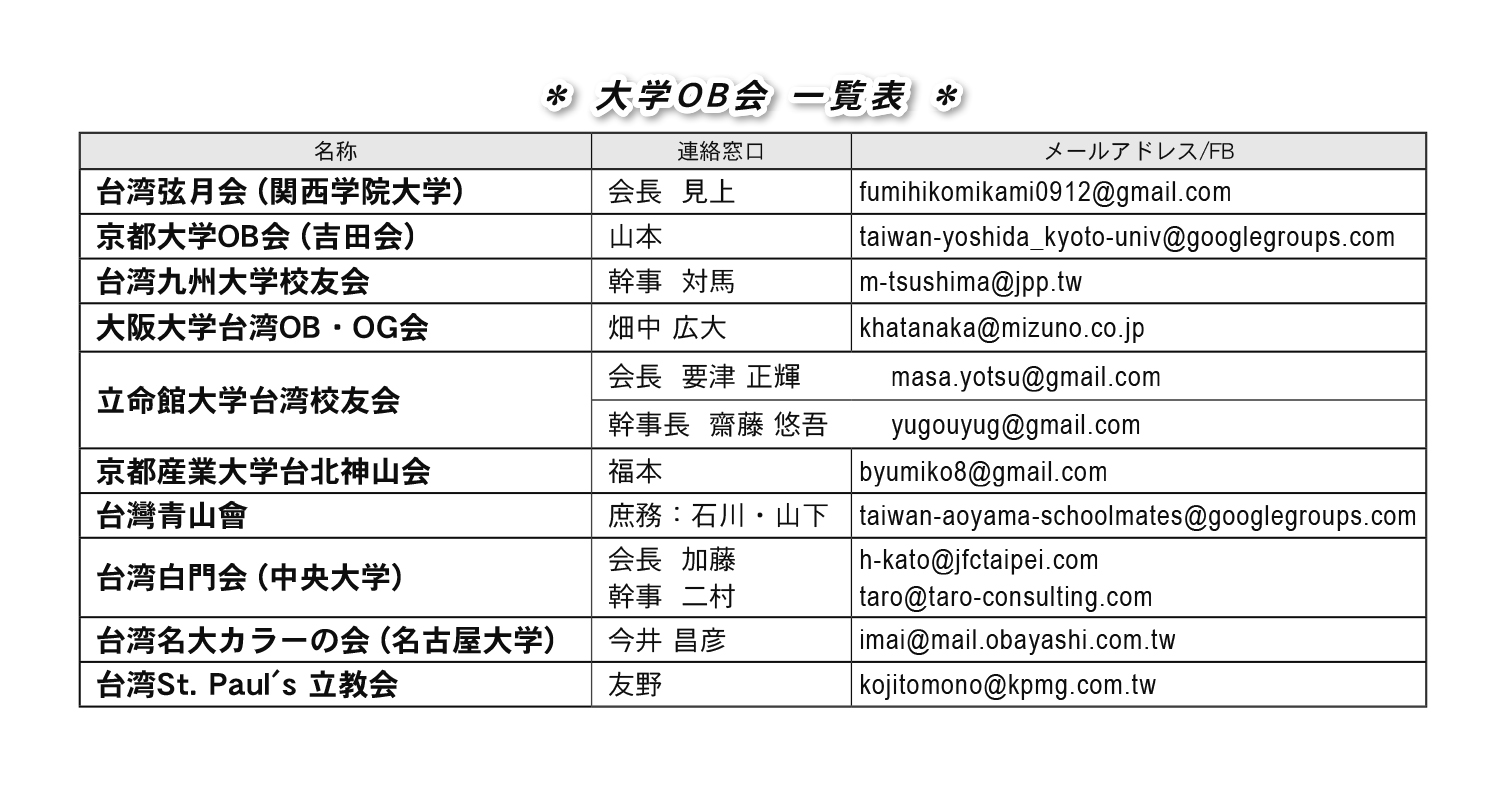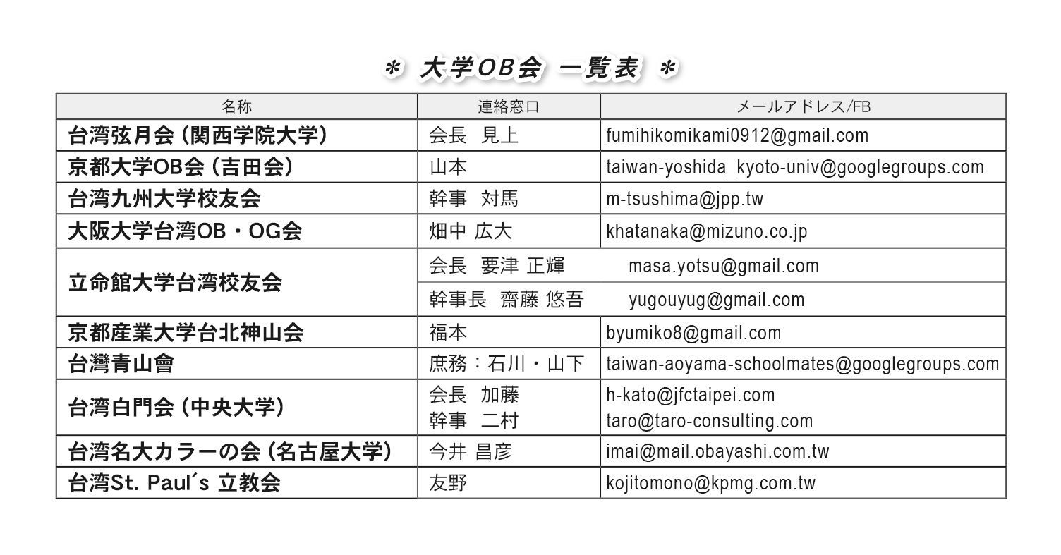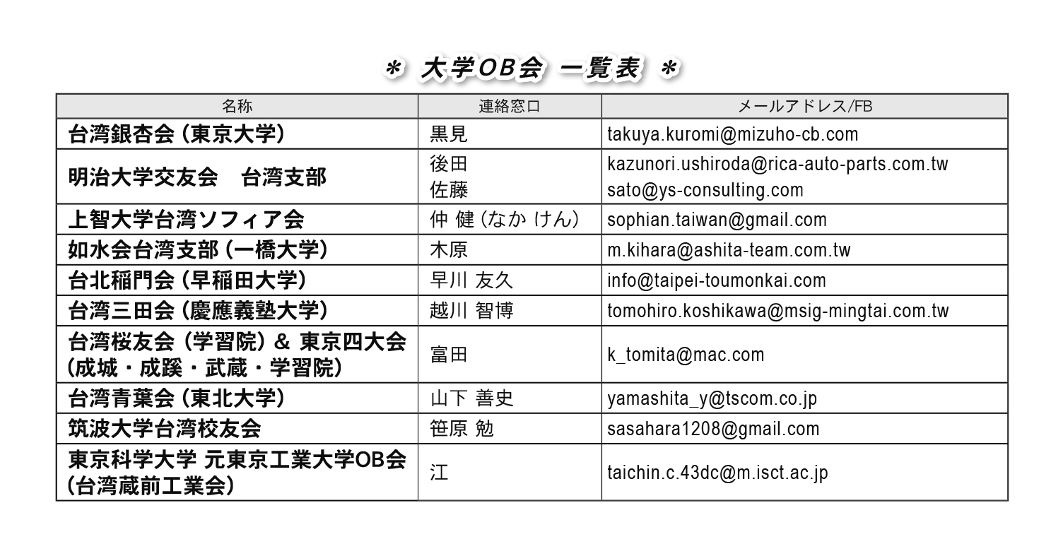 2026年3月18日更新-在台県人会/大学OB会一覧